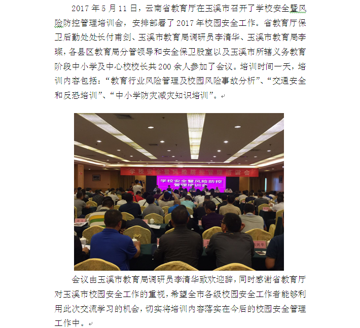 2017年玉溪市學(xué)校安全暨風(fēng)險(xiǎn)防控管理培訓(xùn)會(huì)